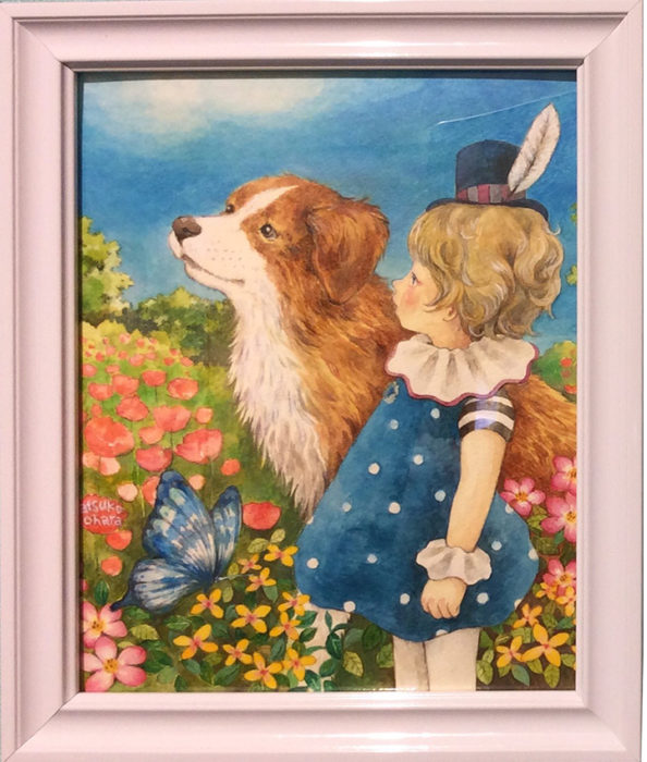 作品タイトル:Garden 作家名:おおはらあつこ サイズ:額装235×285mm(作品本体235×185mm) メディア等:水彩紙、透明水彩絵の具、アクリル絵の具 その他:2023年制作