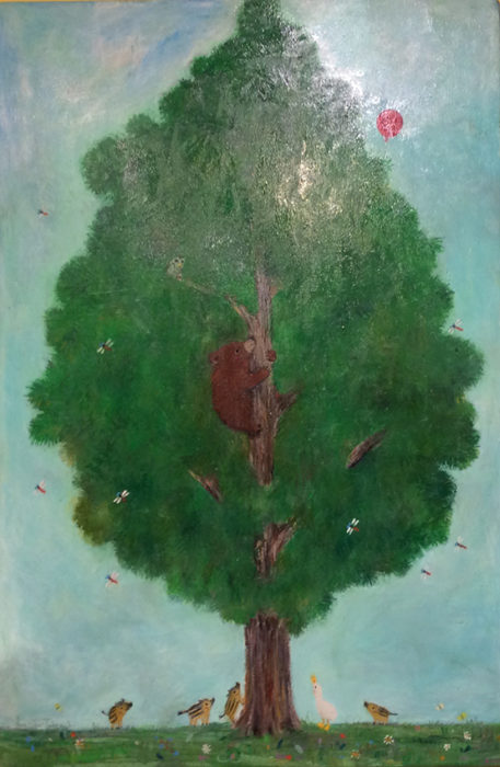 メディア等:木製ボード、オイルパステル