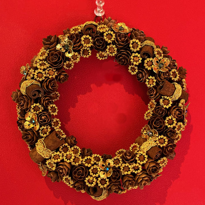 メディア等:ブリヨン(純金純銀メッキワイヤー)、樹脂パール、クローブ、シナモン、木の実