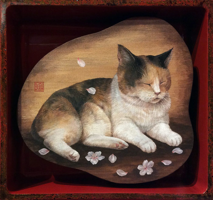 メディア等:板にアクリルガッシュ、重箱