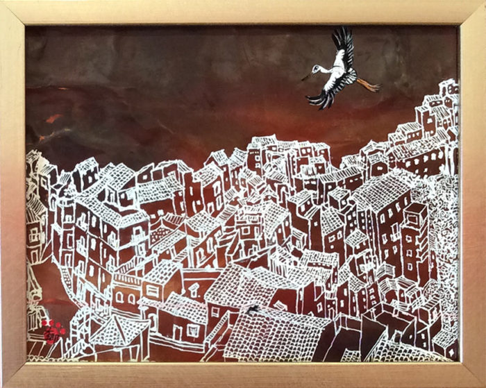 《ご売約済み》「風にのって〜コウノトリが飛ぶ町〜」/ダイゴー・セイコ