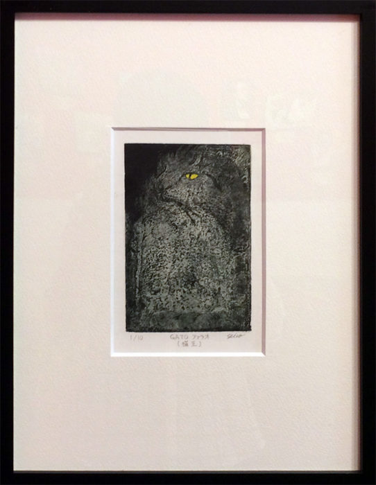 作品タイトル:GATO ファラオ(猫王) 作家名:ダイゴー・セイコ サイズ:マット内12×18cm メディア等:エッチング その他:ED10