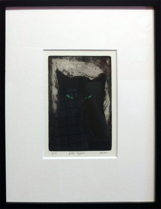 作品タイトル:gato negro 作家名:ダイゴー・セイコ サイズ:マット内13.3×19.8cm メディア等:メゾチント その他:ED10