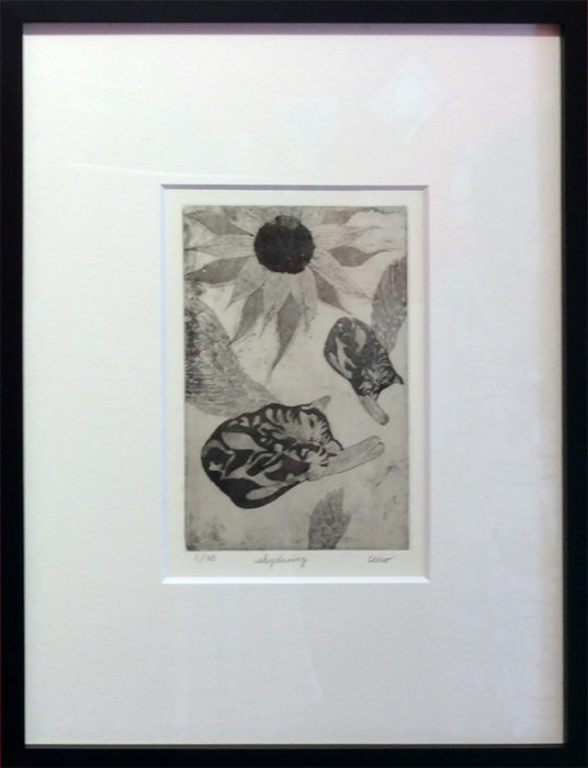 作品タイトル:skydiving 作家名:ダイゴー・セイコ サイズ:マット内13.3×19.8cm メディア等:エッチング その他:ED30