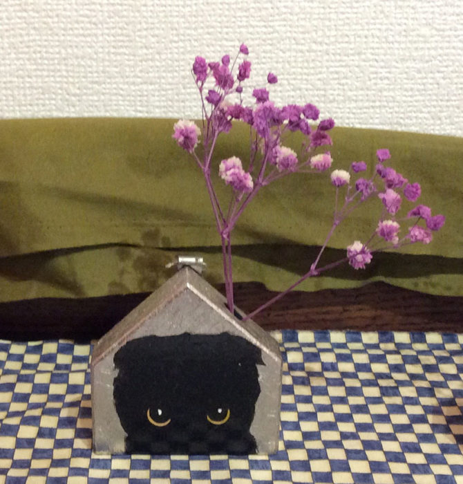 作品タイトル:Moonlight drowns out all but the brightest stars 作家名:金茂華 サイズ:7cm × 7cm メディア等:Platinum leaf, Acrylic gouache on Wood block(Dried flower vase)