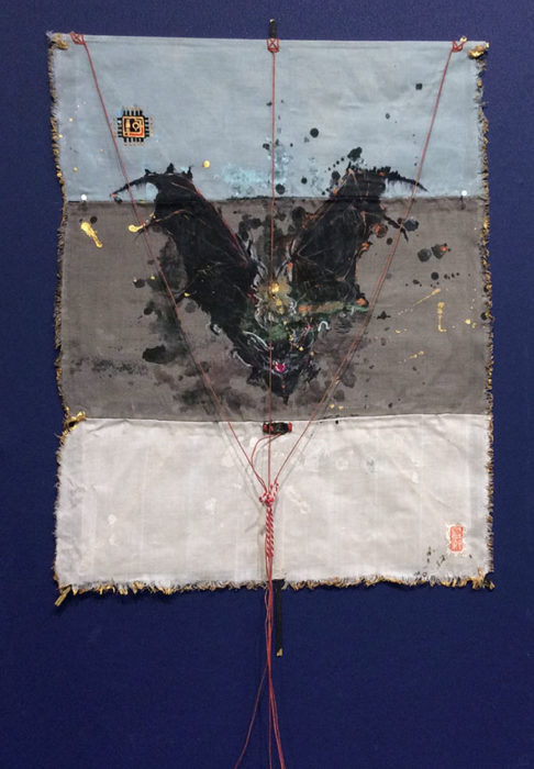 作品タイトル:Get Wings〜翼を君に〜 作家名:金茂華 サイズ:45.8cm × 33.5cm メディア等:Indian ink,Gold paint,Acryl gouache on hand‐sewn cloth