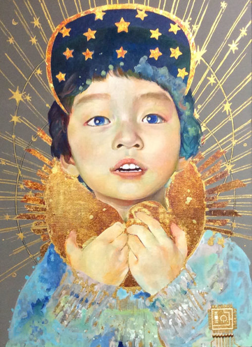 作品タイトル:STAR 作家名:金茂華 サイズ:P8 (45.5cm × 33.3cm) メディア等:acrylic gouache、gold leaf、gold powder on canvas