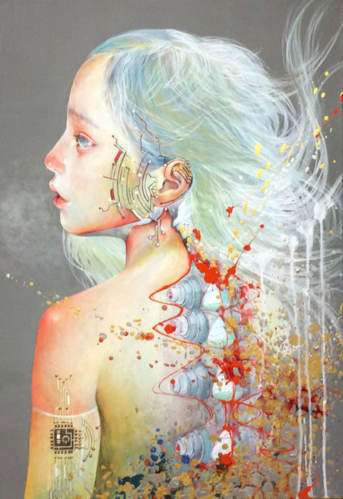 作品タイトル:Adapt – Breath – 作家名:金茂華 サイズ:M20 72.7cm × 50cm メディア等:Acryl gouache, Japanese lacquer, Gold powder on Canvas