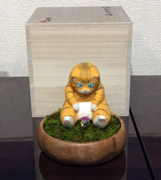 メディア等:石粉粘土、アクリルガッシュ、木製容器、苔ブリザード、造花