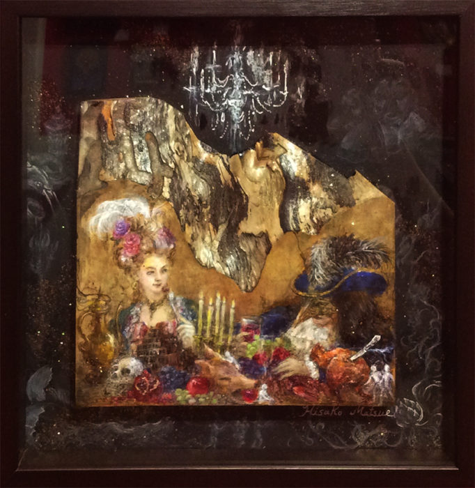 メディア等:(古木)栃の木、イラストボード、アクリル絵具、金箔