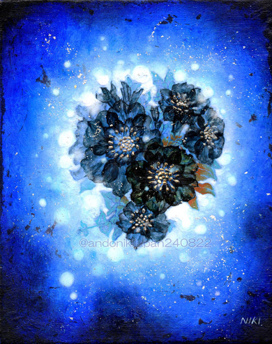 メディア等:アクリル・胡粉・方解末・箔・真鍮粉、キャンバス