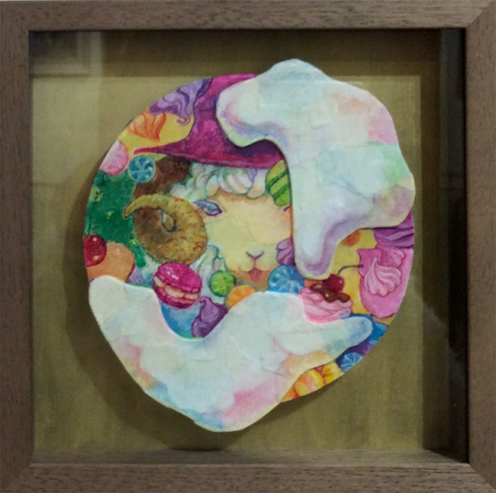 メディア等:パネル、コラージュ、透明水彩