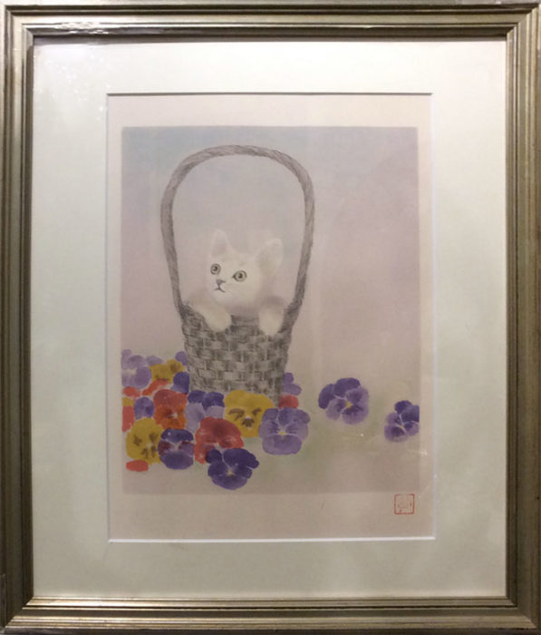 作品タイトル:子猫の四季より「春」 作家名:石井敏 サイズ:描画サイズ21.5×27cm メディア等:リトグラフ